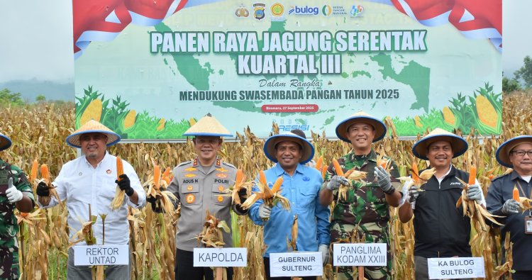 Palu-Sulawesi Tengah-Kapolda Sulawesi Tengah Irjen Pol Dr. Agus Nugroho menghadiri Panen Raya Jagung Serentak Kuartal III tahun 2025. Kegiatan itu digelar di Batalyon A Pelopor Satbrimob Polda Sulawesi Tengah, Sabtu (27/9/2025).